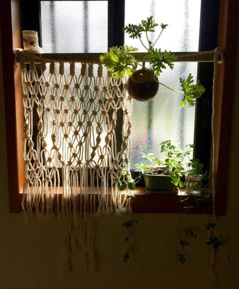トイレ窓に 棚付きマクラメカーテン 暮らしニスタ