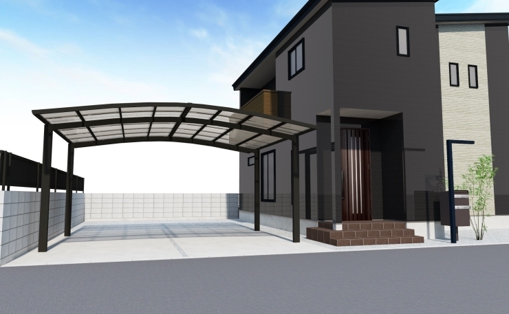 新築外構工事 玄関アプローチ カーポート 花壇他 山形 外構エクステリア 池田土研 株式会社ikeda