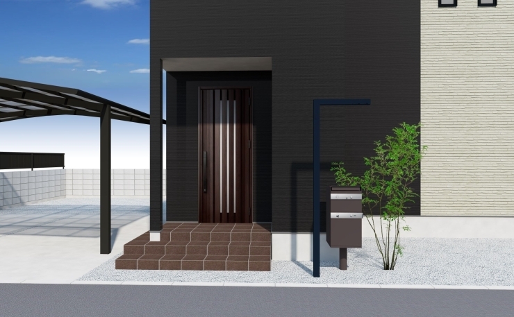 鮮やかな緑のポストが 印象的な玄関アプローチ 滋賀の注文住宅 新築一戸建てなら太陽住宅株式会社 しあわせリズムの家づくり