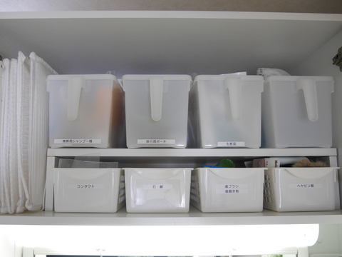 洗面所収納 オープン棚 Ikeaのボックスで 中身に応じた収納用品を Makelife ゆとり時間で しあわせプラス Powered By ライブドアブログ