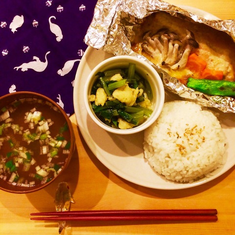 30分で出来る 和食ワンプレート 鮭のホイル焼きと小松菜の炒め物 暮らしニスタ
