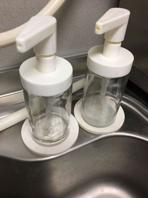 ハンドソープの下にたまる水は100均の珪藻土コースターで解消 Satolabo